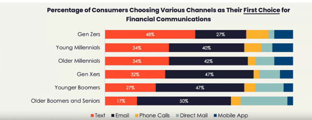 Text is the top financial communications channel for Gen Z and a close second for other generations.