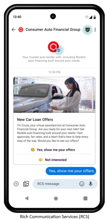 SMS shows a number or short code as the company sender, but spoofing and phishing concerns persist and the very basic presentation isn’t visually appealing. MMS messages can contain a logo to boost customer confidence in the sender. RCS adds verified sender badges, branding, advanced messaging capabilities and can include archived communications to reduce confusion and customer doubt, a clear advantage for payment requests where trust is everything.